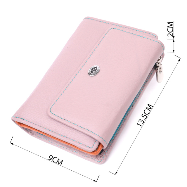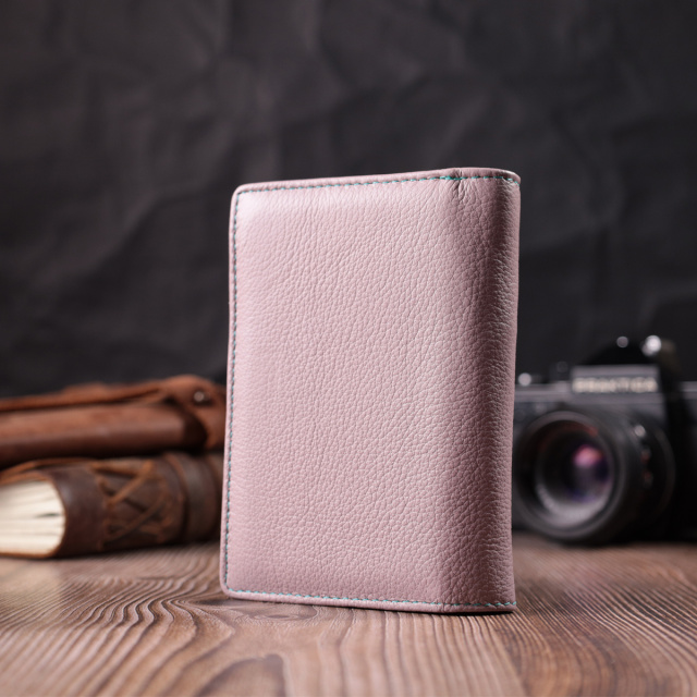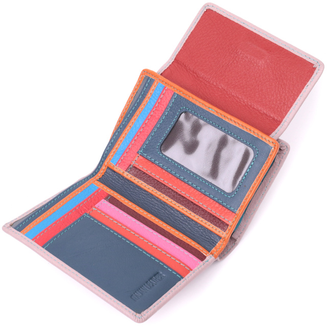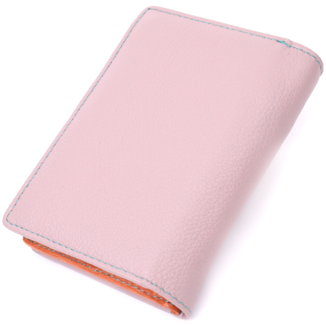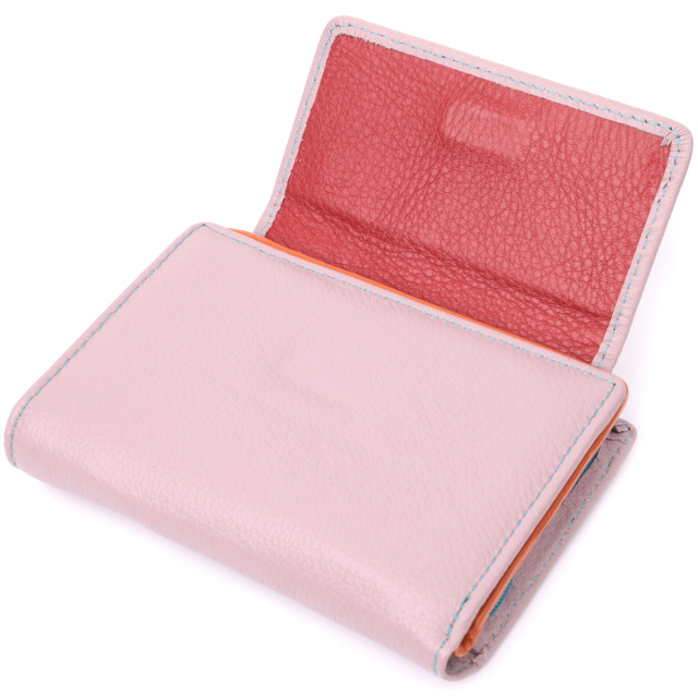 Женский кошелек в красивом бежево-розовом цвете, двойного сложения, что закрывается на клапан с магнитом. Аксессуар выполнен из качественной натуральной кожи, которая отлично носится и не теряет свой первоначальный вид с годами. Отличительная особенность этой модели в яркой внутренней расцветке. Внутри есть два отделения для купюр, девять слотов для пластиковых карт, два скрытых кармана и одна монетница, что закрывается на молнию. Идеальный аксессуар для любительниц кошельков среднего размера и практичного функционала.