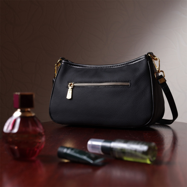Каркасная полукруглая женская сумка из натуральной качественной кожи. Аксессуар состоит из основного отделения, которое закрывается на молнию и клапан с магнитом, потайного кармана на молнии и кармана открытого типа внутри, а также кармана снаружи на тыльной стороне. Носить сумку можно в руке, на плече и через плечо для этого имеется съемные два кожаных ремешка. В аксессуаре использована качественная фурнитура цвета серебра.