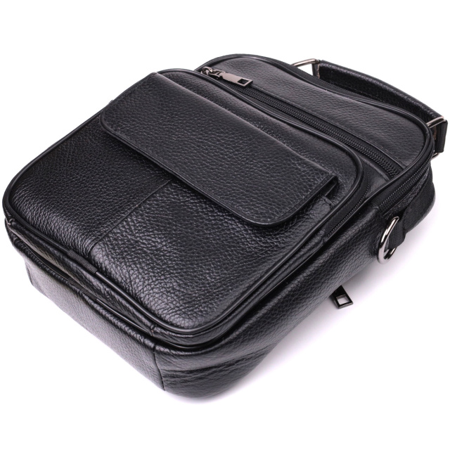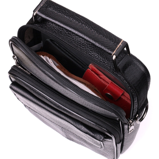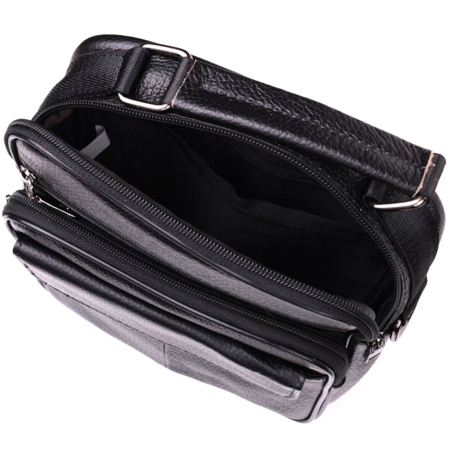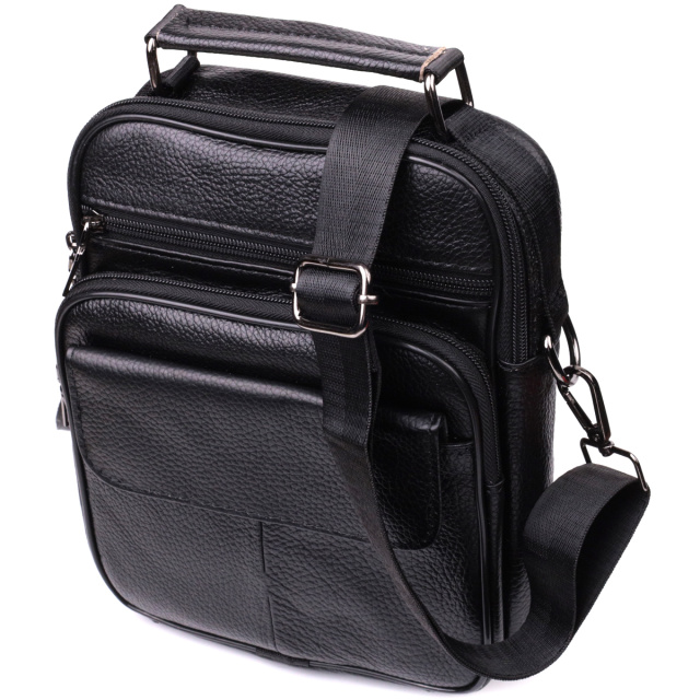 Стильный мужской мессенджер из натуральной кожи. Аксессуар можно носить в руке, на плече и через плечо, для этого предусмотрена кожаная ручка и съемный плечевой ремень. В изделии использована качественная фурнитура и надежная подкладка. По краям аксессуар прошит ровной строчкой. Сумка станет прекрасным подарком для любого мужчины.