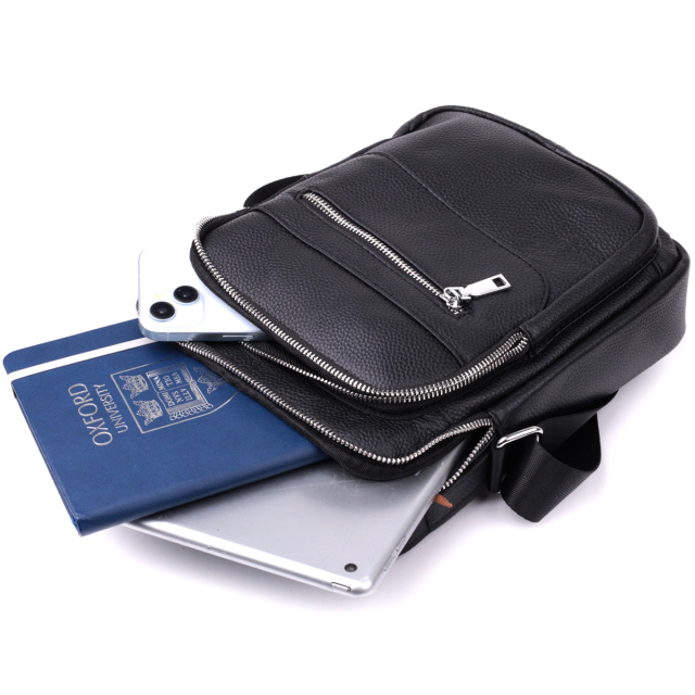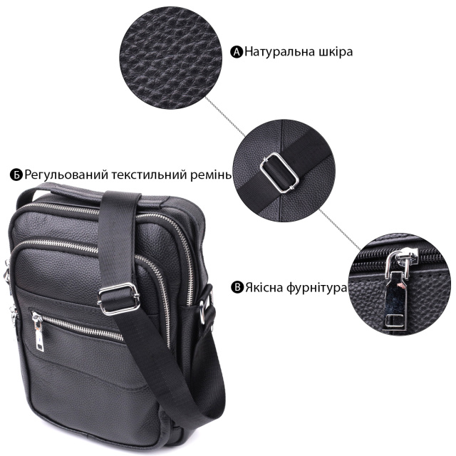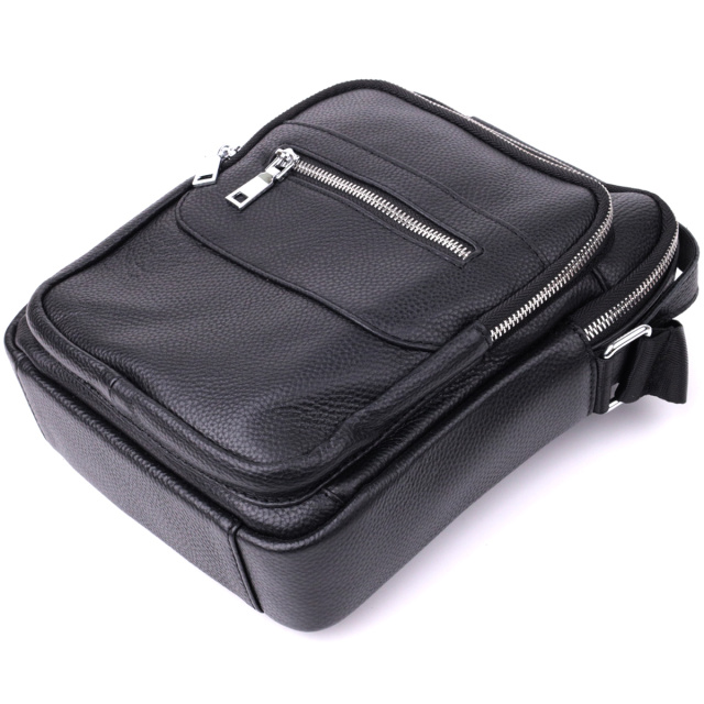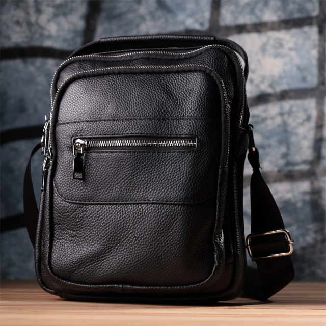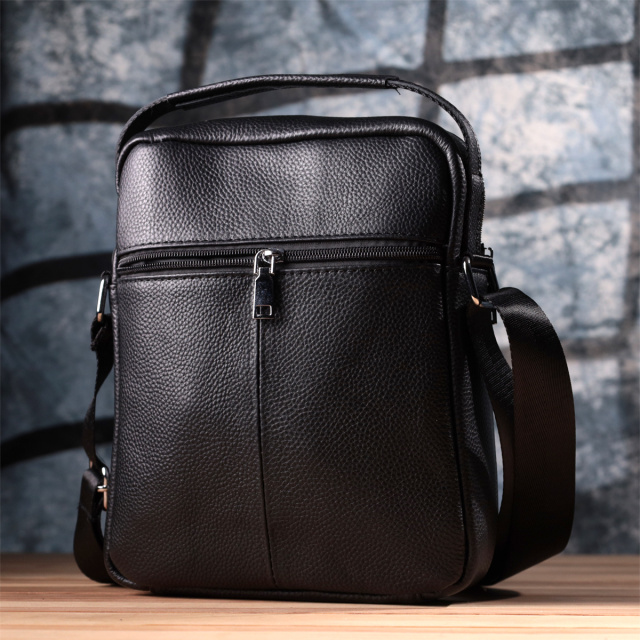 Стильная мужская сумка из натуральной кожи. Изделие выполнено из зернистой кожи черного цвета. Внутри аксессуара плотная текстильная подкладка черного цвета. Сумка будет вашим идеальным вариантом на каждый день. Модель очень удобная. Классический дизайн никогда не выйдет из моды. Такая сумка подойдет под любые вещи из вашего гардероба. Модель дополнена качественной фурнитурой в дизайн изделия.