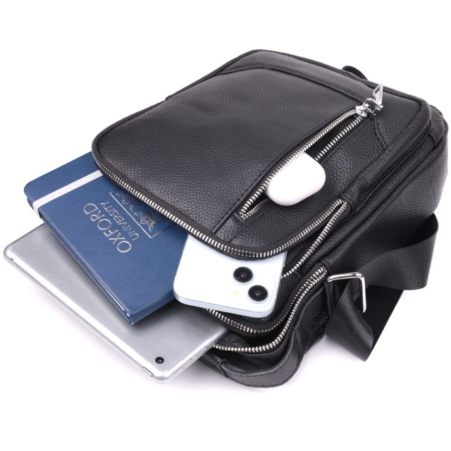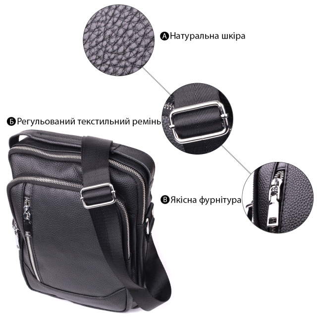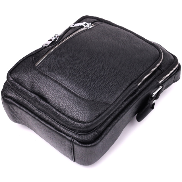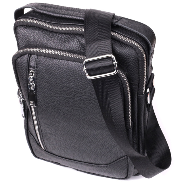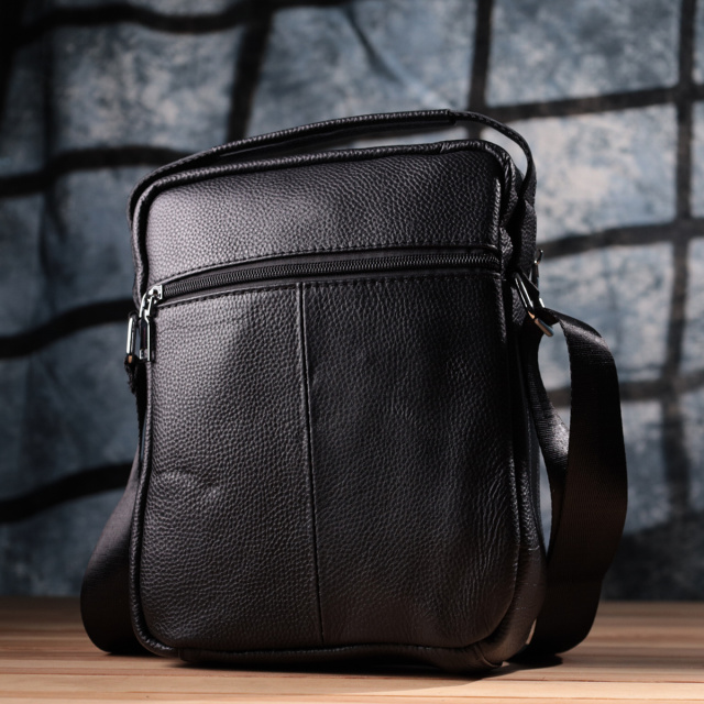 Функциональная мужская сумка из натуральной кожи. Изделие выполнено из зернистой кожи черного цвета. Внутри аксессуара плотная текстильная подкладка черного цвета. Сумка будет вашим идеальным вариантом на каждый день. Модель очень удобная. Классический дизайн никогда не выйдет из моды. Такая сумка подойдет под любые вещи из вашего гардероба. Модель дополнена качественной фурнитурой в дизайн изделия.