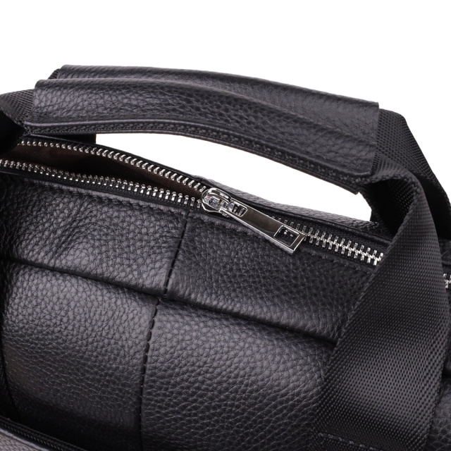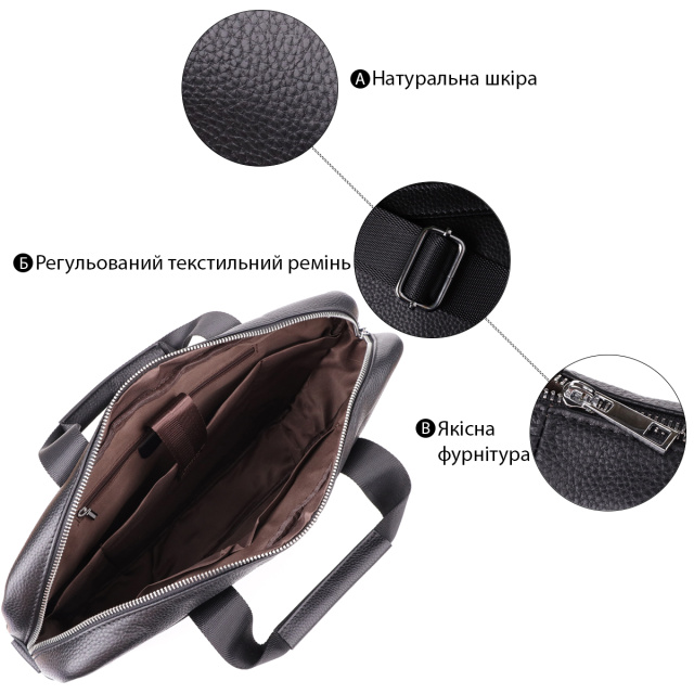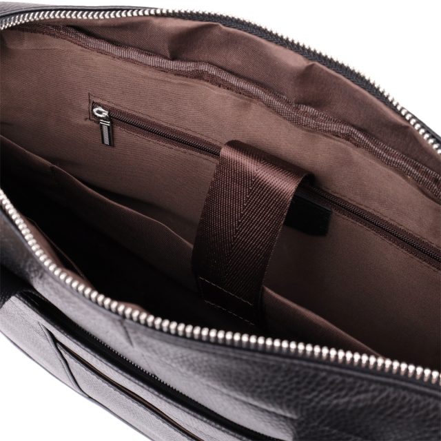 Стильный и функциональный кожаный портфель черного цвета, выполненный из натуральной кожи с прочным каркасом, идеально подойдет для деловых людей, ценящих комфорт и порядок. Сумка надежно сохраняет форму и обеспечивает защиту содержимого, включая ноутбук до 15 дюймов и документы формата А4.