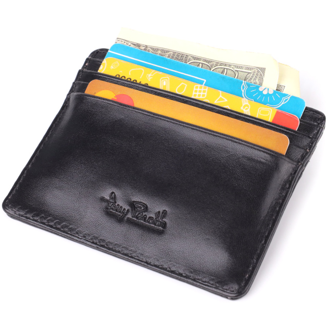 Стильный чёрный картхолдер Tony Perotti — идеальное решение для тех, кто предпочитает минимализм и удобство. Изделие выполнено из натуральной кожи высокого качества, отличается износостойкостью и приятной текстурой. Компактный формат позволяет удобно разместить до 8 карт, а фирменное тиснение подчёркивает статус и элегантность аксессуара.