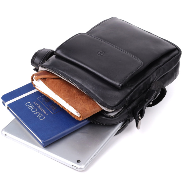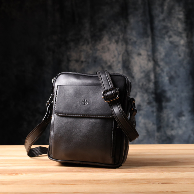 Кожаная сумка от Tony Perotti — удобный и функциональный аксессуар для современного мужчины. Изделие выполнено из мягкой телячьей кожи и отличается продуманной организацией внутреннего пространства. Два основных отделения и дополнительные карманы позволяют аккуратно разместить документы, телефон и личные вещи. Комбинированный наплечный ремень обеспечивает комфорт при ношении, а фурнитура цвета тёмный никель и фирменное тиснение «роза ветров» подчёркивают лаконичный дизайн и принадлежность к коллекции Cortina.