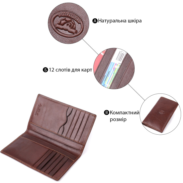 Портмоне-купюрник Tony Perotti — лаконичный и функциональный аксессуар для тех, кто ценит минимализм и удобство. Два отделения для купюр позволяют аккуратно хранить наличные, а 12 слотов для карт обеспечивают порядок и быстрый доступ к необходимым картам. Фирменное тиснение Tony Perotti подчёркивает статус и качество изделия, делая портмоне стильным элементом повседневного образа.