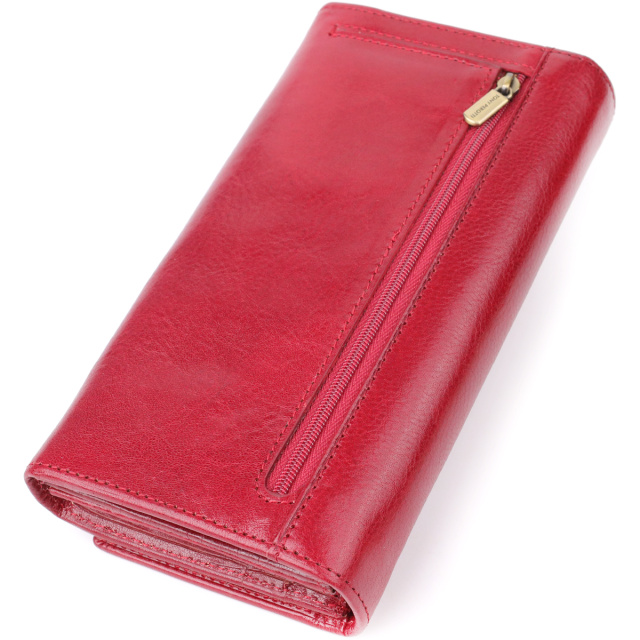 Вместительное женское классическое портмоне Tony Perotti в насыщенном красном цвете сочетает элегантность, функциональность и безупречное качество. Продуманная внутренняя организация позволяет удобно разместить купюры, карты, документы и мелочь, а внешний карман на молнии обеспечивает быстрый доступ к монетам. Брендированная фурнитура, фирменная клетчатая подкладка и тисненный логотип подчёркивают премиальный стиль аксессуара и делают его отличным выбором для современной женщины.