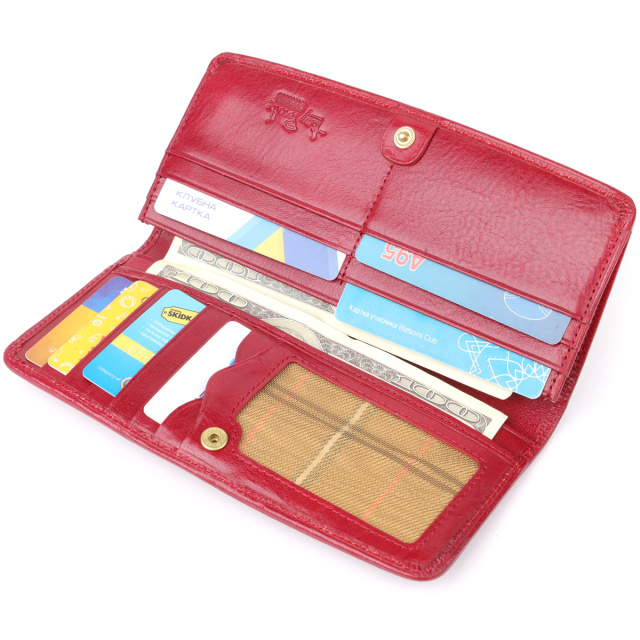Вместительное женское классическое портмоне Tony Perotti в насыщенном красном цвете сочетает элегантный внешний вид и продуманную функциональность. Просторные отделения позволяют удобно разместить купюры, карты и документы, а внешний карман на молнии обеспечивает быстрый доступ к мелочи. Брендированная фурнитура, фирменная клетчатая подкладка и тисненный логотип подчёркивают премиальное качество и стиль аксессуара.