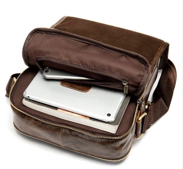 Стильная компактная мужска сумка из натуральной кожи. Сумка очень удобная не имеет лишнего веса и ее удобно использовать для повседневной жизни. Аксессуар дополнен золотистой фурнитурой в дизайн аксессуара. Сумка закрывается на клапан с магнитами. Сумка имеет текстильную несъемную ручку. Будет прекрасным подарком для близкого человека.