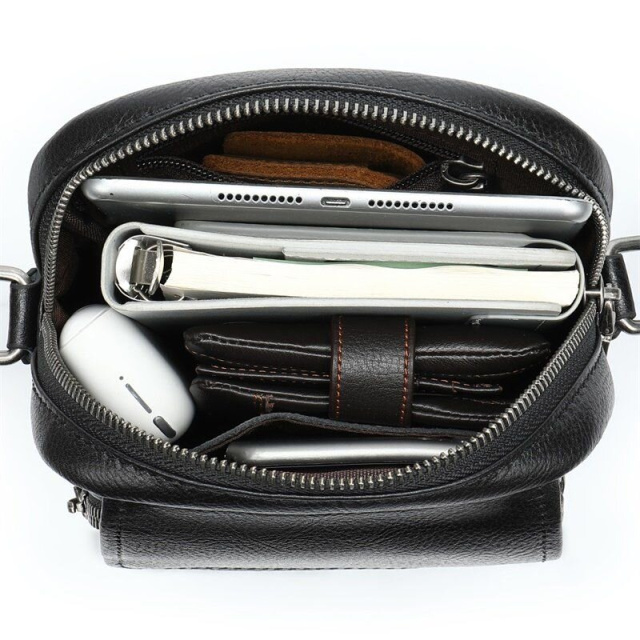 Стильная и одновременно компактная мужская сумка из натуральной кожи. По краям аксессуар прошит темной нитью. Все швы ровные, торчащих ниток нет. Внутри аксессуара плотная текстильная подкладка коричневого цвета. Сумка будет вашим идеальным вариантом на каждый день. Модель очень удобная. Классический дизайн никогда не выйдет из моды. Такая сумка подойдет под любые вещи из вашего гардероба. Модель дополнена качественной фурнитурой в дизайн изделия.