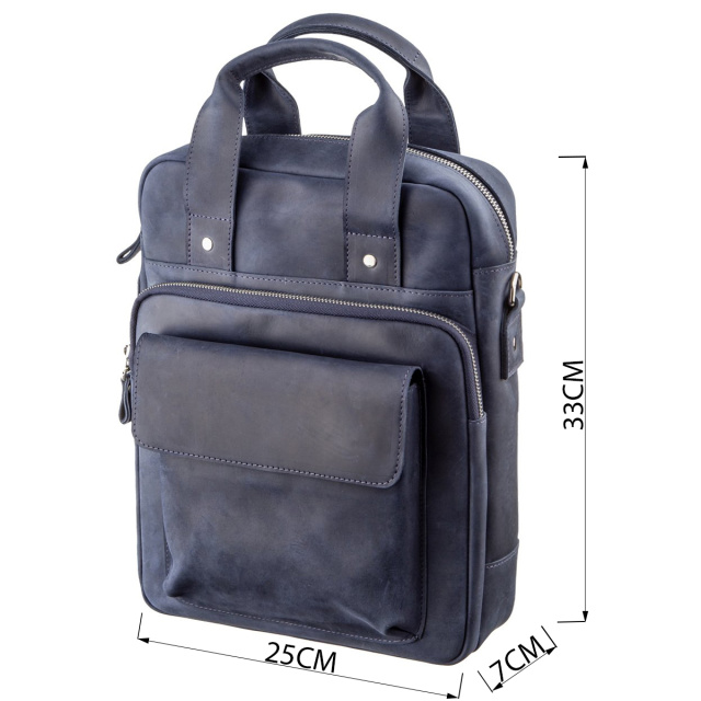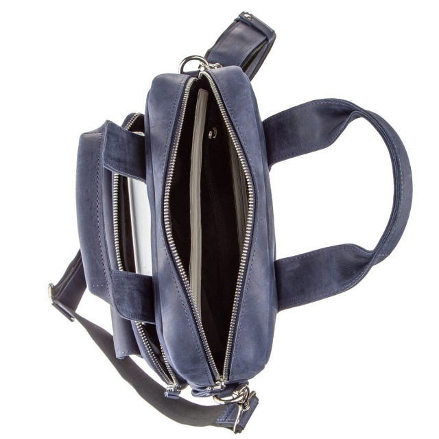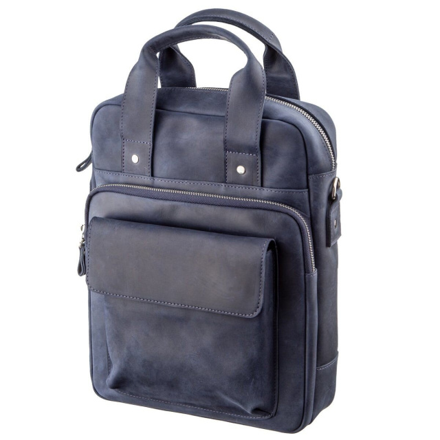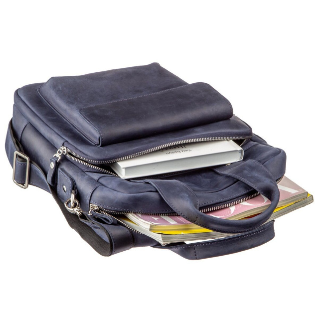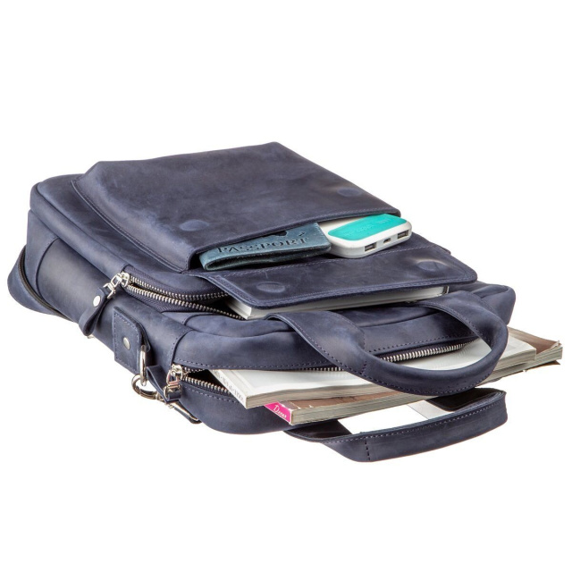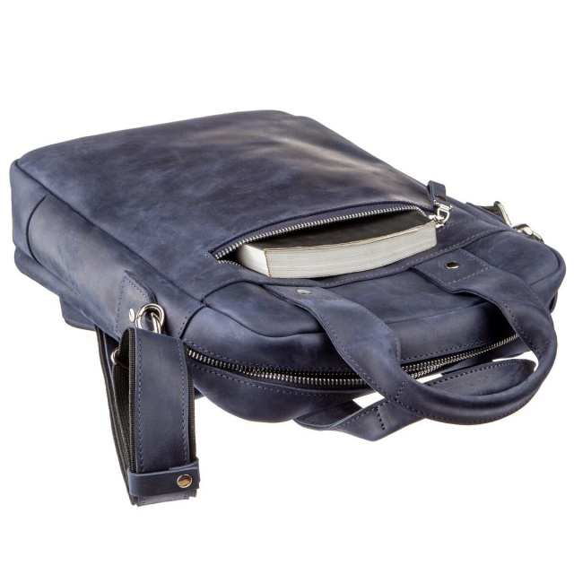 Выполненная из натуральной кожи синяя сумка от Shvigel будет прекрасным выбором на каждый день. Сумка вмещает документы формата А4. Идеальный вариант на работу или встречу. Мы разработали данную модель для тех, кто любит качественные и в тоже время оригинальные вещи. Синий цвет прекрасно подчеркнет ваш вкус и выделит вас из толпы среди серой массы. Сумка из натуральной кожи Crazy horse смотрится по винтажному. Со временем на сумке появляются царапины, которые создают эффект старины, за который и любят этот типа кожи многие клиенты. Идеальный вариант, как для обычного офисного работника, так и солидного бизнесмена. Сумка подойдет практически к любому вашему роду деятельности. Если вам понравилась эта модель вы можете увидеть ее в разных типах кожи и цветах. Осталось только выбрать на свой вкус и ваша сумка прослужит вам далеко не один год.