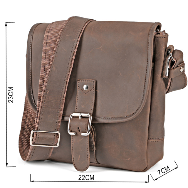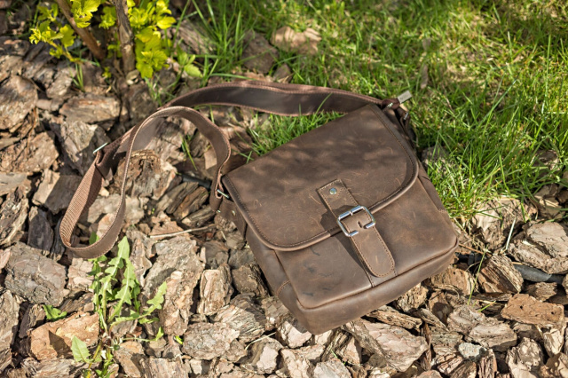 Современная мужская сумка через плечо. Аксессуар выполнен из натуральной высококачественной винтажной кожи. Цвет фурнитуры: серебро. Сумка надежно прошита прочной нитью. Швы - ровные, аккуратные.