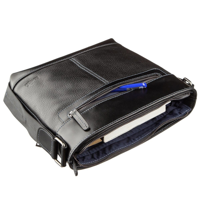 Стильная и функциональная сумка от украинского бренда Shvigel в комбинации двух типов кожи – флотар и гладкой. Дизайн сумки продуман до мелочей и однозначно вам будет по душе. Сумка дополнена несъемным текстильным ремешком. Внутри модели синяя крепкая текстильная подкладка. Аксессуар прошит по краям светлой нитью. Аксессуар будет идеальным вариантом на каждый день.