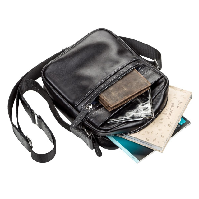 Функциональная мужская сумка из натуральной высококачественной гладкой кожи. Аксессуар прошит светлой нитью, что придает изделию прочности и оригинального вида. Данный аксессуар не только функционален в использовании, но и дополняет элегантный образ современного мужчины. Размер сумки небольшой, но вместительный и очень удобный.