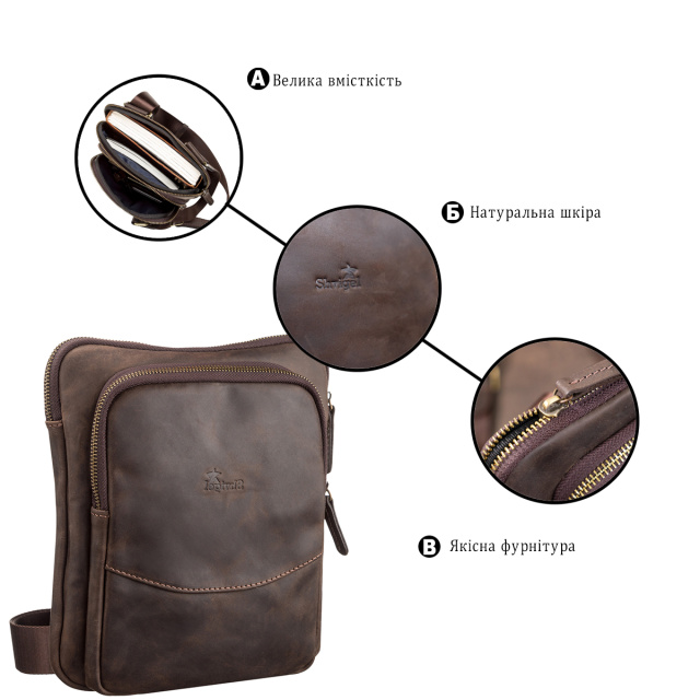 Сумка мужская SHVIGEL 11091 кожаная Коричневая