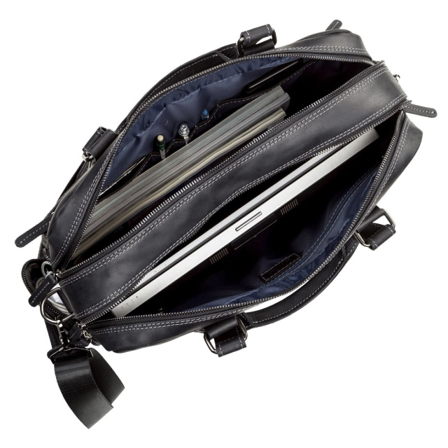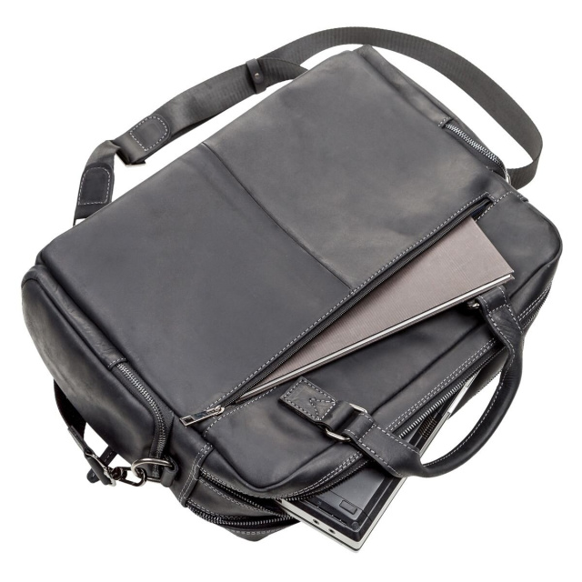 Внутри – первого отдела боковые кармашки для телефонов, ручек и разных личных мелочей, внутри второго: отдел на молнии для ноутбука или планшета, держатель для ключей. Снаружи – на передней стенке большой два накладных кармана на молниях, на задней стенке карман на молнии. По бокам два кармашка на змейках. Подкладка выполнена из прочного материала, в наличии съемный плечевой ремень. Аксессуар упакован в пылезащитный чехол.