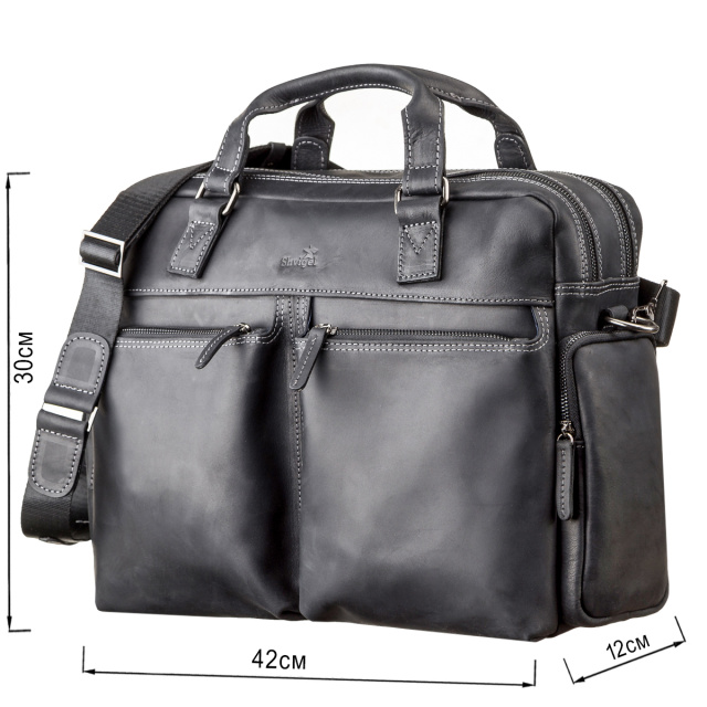 Материал: натуральная винтажная кожа; Размеры (ШхВхГ, см): 42х30х12; Цвет: черный; Страна производитель: Украина. Мужская, вместительная сумка