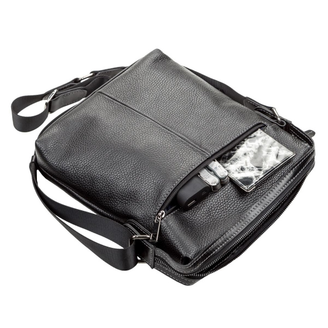 Прочная сумка для стильных и уверенных в себе мужчин. Аксессуар выполнен из натуральной зернистой кожи мягкой и приятной на ощупь.