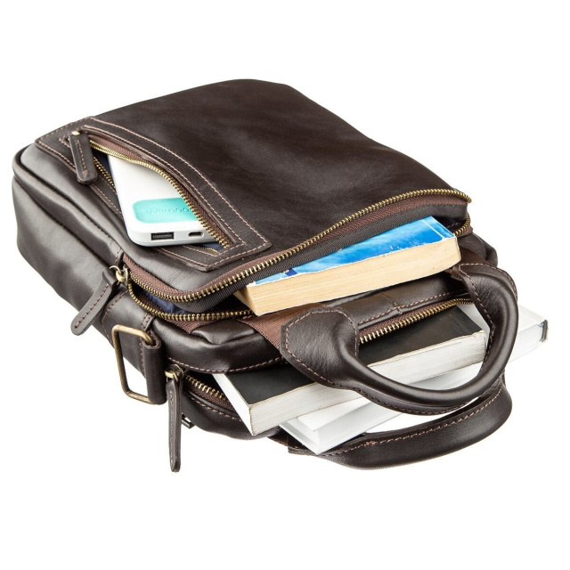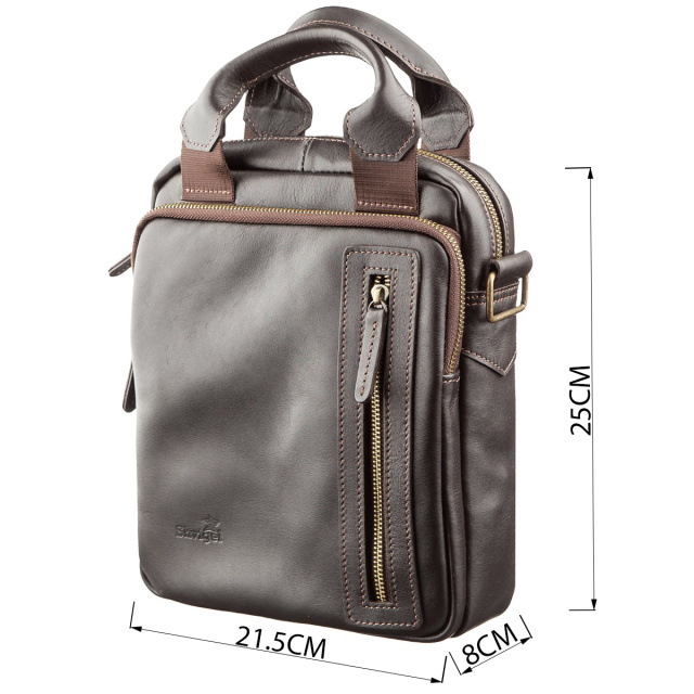 Качественная сумка из натуральной кожи от отечественного производителя в гладкой коже. Модель прошита по краям коричневой нитью и дополнена золотистой фурниутрой. На лицевой стороне также нанесен логотип бренда. Сумка станет прекрасным помощником для любого мужчины. Удобная в использовании и очень качественная. Аксессуар прослужит вам далеко не один год. Покупая сумку от украинского производителя, вы можете быть уверены, что это действительно натуральная кожа и высокое качество.