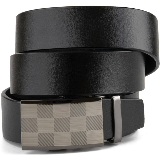 Ремень мужской с автоматической пряжкой шахматка Vintage 20266 Черный