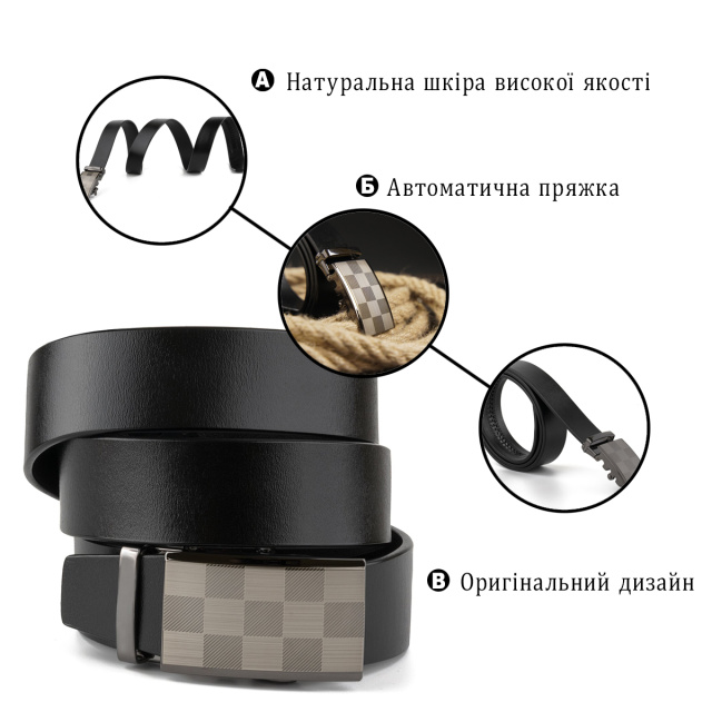 UA MarketКиївJANAТовари та послугиРемниМужские ремни Ремень мужской с автоматической пряжкой шахматка Vintage 20266 Черный