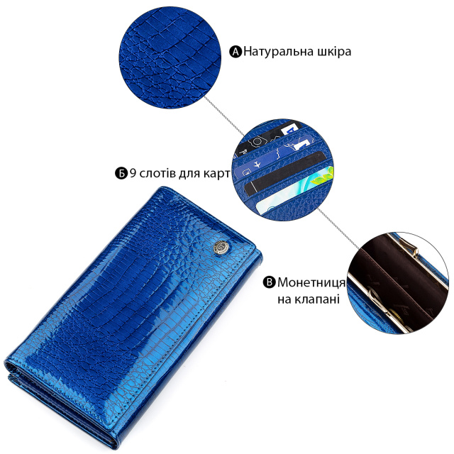 Отличный кошелек с натуральной кожи, представлен в синем цвете, который легко сможет выделить индивидуальность хозяйки. Прекрасно продуманный и проработанный функционал обеспечивает достаточную вместительность с вшитыми отделениями и отсеками, а также карманов для мелких ценных вещей. Порадует и фирменная коробка, благодаря которой подарок станет еще лучшим и вызывающим.