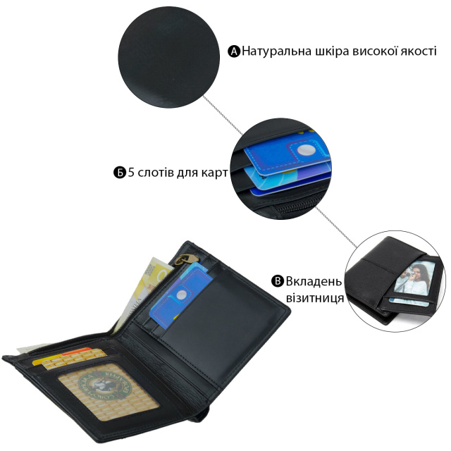 - 5 ячеек для кредиток (одна из которых под пленкой);