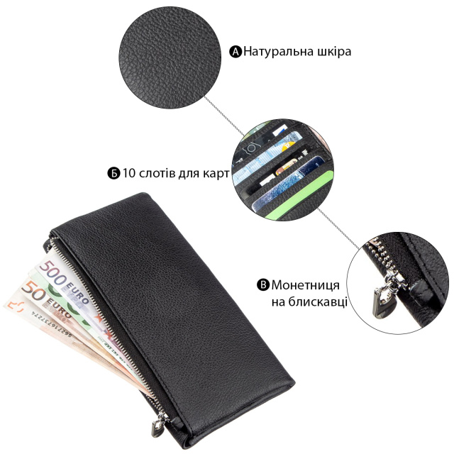 Материал: натуральная кожа;  Размеры (ШхВ, см): 19х10; Цвет: черный; Страна производитель: Китай; Страна происхождения ТМ: Украина. ...