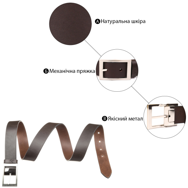 Великолепный мужской ремень изготовлен из высококачественной натуральной итальянской кожи. Роскошный внешний вид ему придает коричневый цвет и строгий, сдержанный дизайн. Современный высококлассный аксессуар для стильных и ярких мужчин. Производитель, использует исключительно импортную фурнитуру, которая не темнеет, не царапается и не вызывает аллергии.