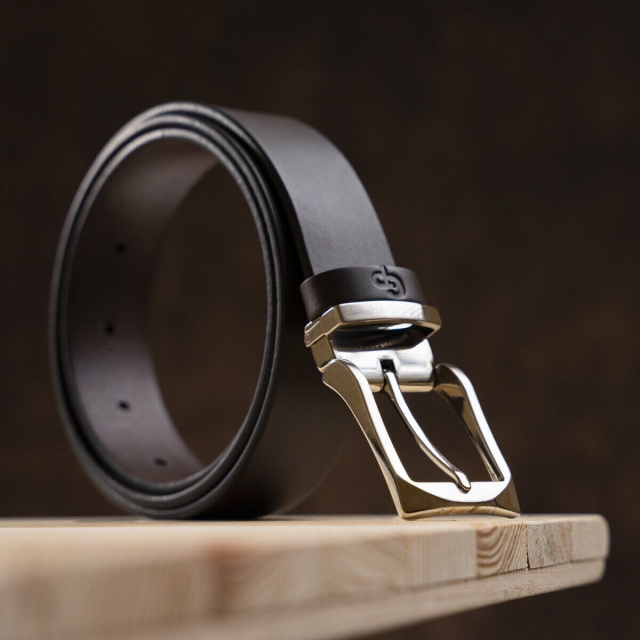 Классический мужской ремень из цельной итальянской кожи. Производитель, использует исключительно импортную фурнитуру, которая не темнеет, не царапается и не вызывает аллергии.