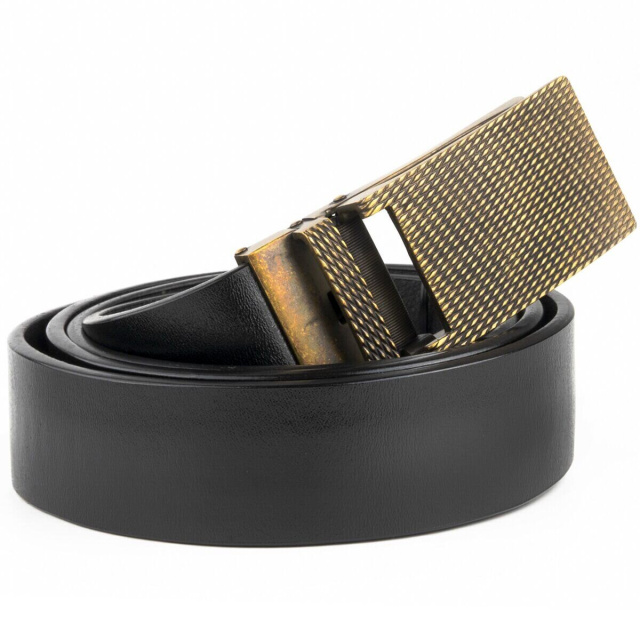 Кожаный мужской ремень высочайшего качества. Изделие с легкостью дополнит любой ваш образ. В сочетании с оригинальной пряжкой цвета латунь и мелкой зернистостью в виде полосок ремень не оставит равнодушным любого мужчину. Автоматическая пряжка ремешка очень практична и проста в использовании. Кожаный ремень уже давно стал неотъемлемой частью базового мужского гардероба. По качеству аксессуар ничем не уступает дорогим именитым брендом. Рекомендуем к покупке данный ремешок. Изделие станет прекрасным подарком для любого мужчины.