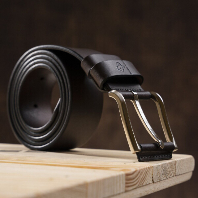 Отличный кожаный ремень из итальянской высококачественной кожи. Аксессуар выполнен в темно-коричневом цветовом решении. Цвет фурнитуры серебро. По умолчанию ремень поставляется в картонной упаковке, поэтому он может послужить подарком мужчине к любому празднику.