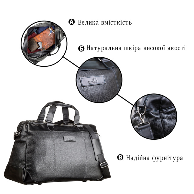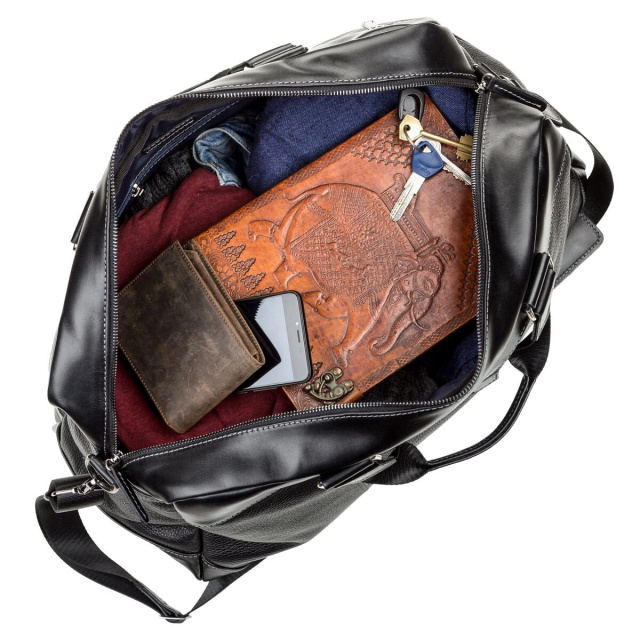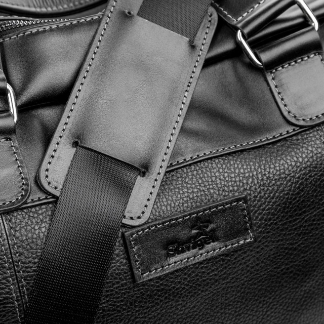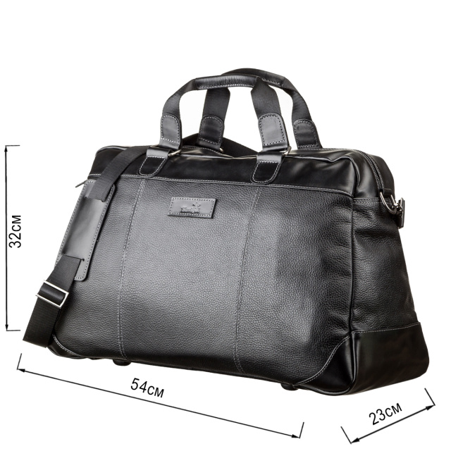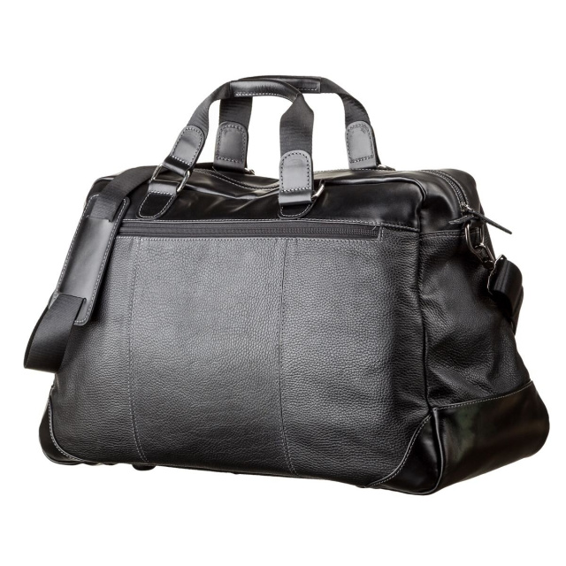 Прочная дорожная сумка на двух ручках для людей, которые часто отправляются в деловые поездки. Изделие выполнено из натуральной зернистой кожи с элементами гладкой кожи. Внутри – большое вместительное отделение, по бокам, на стенках отделения на молниях. Снаружи – отделение на змейке на задней стенке сумки.