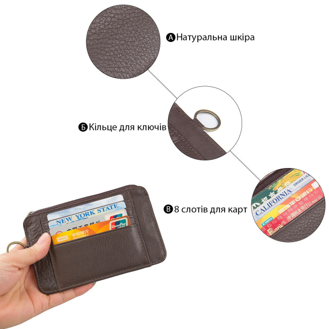 -8 отделений для пластиковых карточек снаружи ;