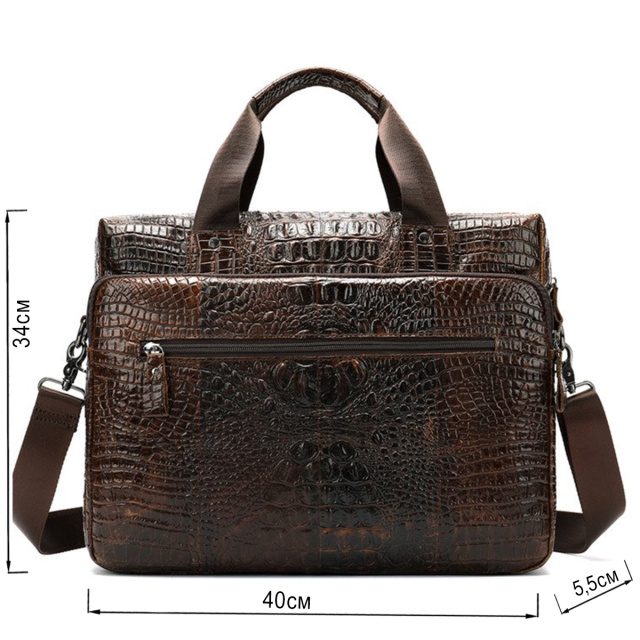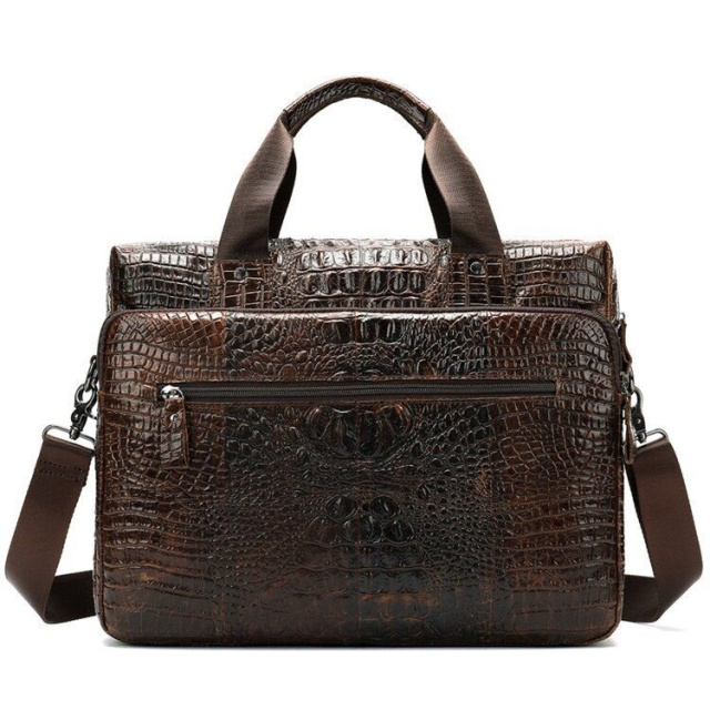 Солидная, качественная сумка с тиснением под крокодила из натуральной кожи. В сумке удобно носить ноутбук, документы формата А4. Смотрится такая сумка очень солидно и роскошно. Кожа такого плана очень хорошо и долго носится и неприхотлива в уходе. Очень комфортно ходить с такой сумкой на работу или на встречи. Также, вы можете взять сумку с собой в поездку. Аксессуар отлично подойдет для мужчин, которые любят чувство стиля и роскошь. Идеальный подарок для любого мужчины.