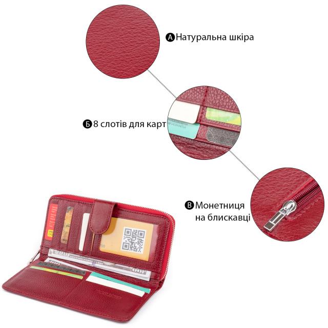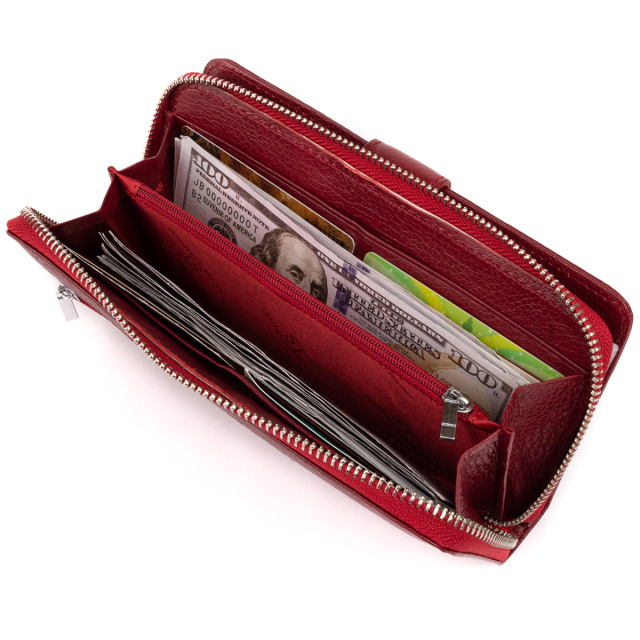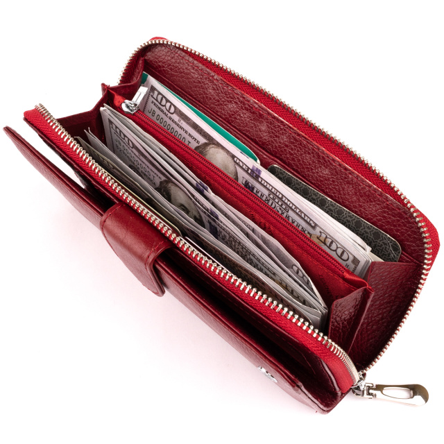 Вместительный аксессуар из натуральной кожи благородного бордового цвета. Изделие подойдет для девушек, которые любят вместительные и стильные аксессуары. Кошелек состоит из двух частей. Первая часть для купюр, вторая - для кредиток. Данный аксессуар способен заменить вам сразу два аксессуара: кошелек и визитницу. Изделие из натуральной кожи мягкой и эластичной на ощупь прослужит вам далеко не один год. Аксессуар станет прекрасным подарком для девушки любого возраста. В нашем магазине вы можете купить данную модель по доступной цене.