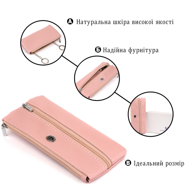 Розовая ключница из кожи. Аксессуар добавит легкости и подчеркнет женственность своей обладательницы.Считается, что с покупкой нового аксессуара последуют приятные перемены. Материал исполнения - натуральная кожа. Производство - фабричный Китай. Внутри - четыре крепления для стандартных ключей. Очень практичный и незаменимый аксессуар современного человека. Ключница - практичный аксессуар. Модель помещается в маленькую сумочку или карман. Ваши ключи будут в одном места, а карманы в целостности. Приятный и доступный кейс для хранения ключей. Аксессуар станет идеальным подарком для близкого человека. На нашем сайте модель доступна в нескольких цветах. За самыми доступными ценами заходите в наш магазин.