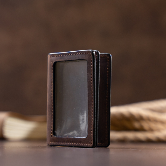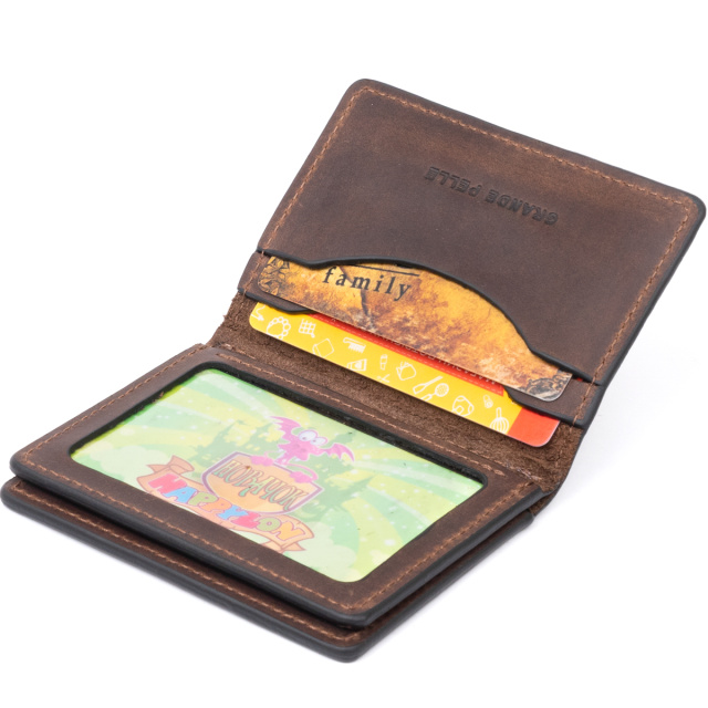 Стильная визитница-обложка из натуральной винтажной кожи классического и модного коричневого цвета. В аксессуар легко поместится рабочее удостоверение в виде карточки, пропуск, ид-карта, права нового образца. В производстве обложки используется натуральная итальянская кожа.