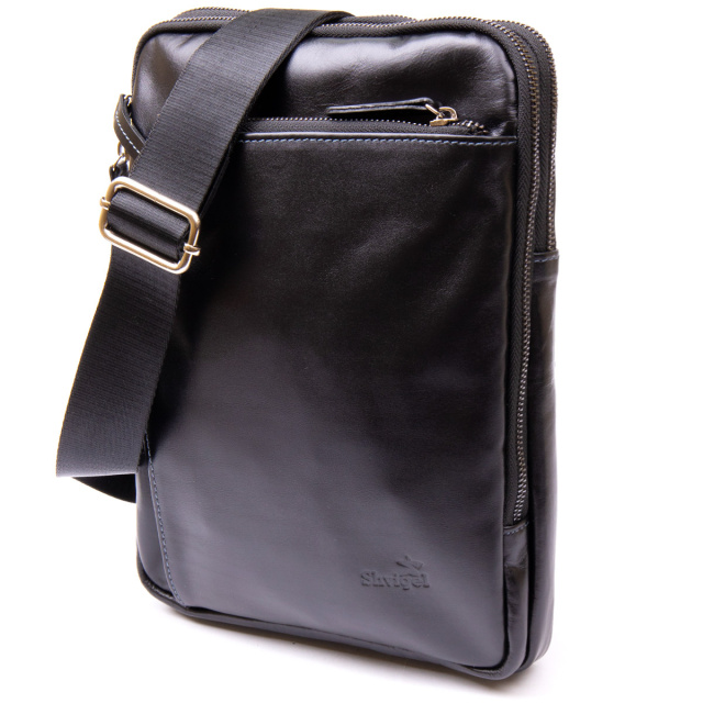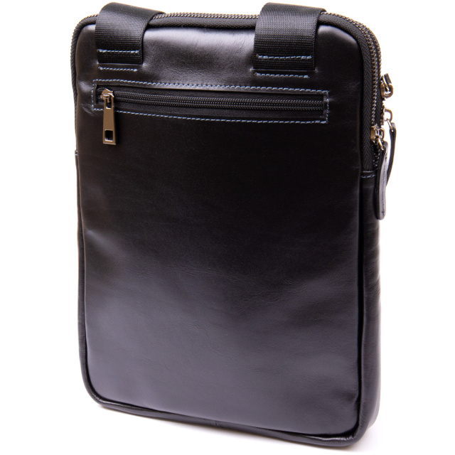 Кожаная мужская сумка для планшета в гладкой коже. Данный тип кожи совсем неприхотлив в уходе. Сумка подойдет под любой ваш образ подчеркивая при этом ваш отменный вкус. Модель прекрасно подойдет на каждый день. По краям сумка прошита светлой нитью в дизайн аксессуара. Внутри – синяя подкладка из плотного текстиля. Сумка станет прекрасным подарком для любого мужчины и прослужит далеко не один год.