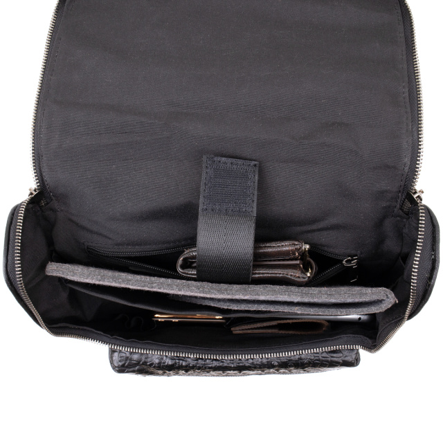 Вместительный рюкзак из плотной кожи, которая держит форму. Изделие под рептилию. Рюкзак очень функциональный и практичный. Подойдет данная модель как для путешествий, так и на каждый день и как рюкзак для ноутбука. Выглядит очень солидно и дорого. С таким рюкзаком будет удобно и ваши руки останутся свободны. На тыльной стороне уплотненная спинка сеткой для вашего комфорта. Рекомендуем рюкзак к покупке как для себя, так и на подарок.