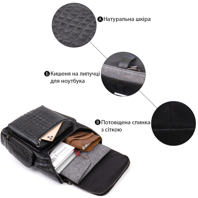 UA MarketКиївJANAТовари та послугиРюкзакиКожаные рюкзакиРюкзак под рептилию кожаный Vintage 20431 Черный
