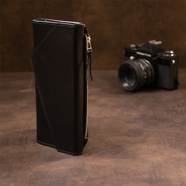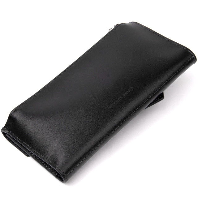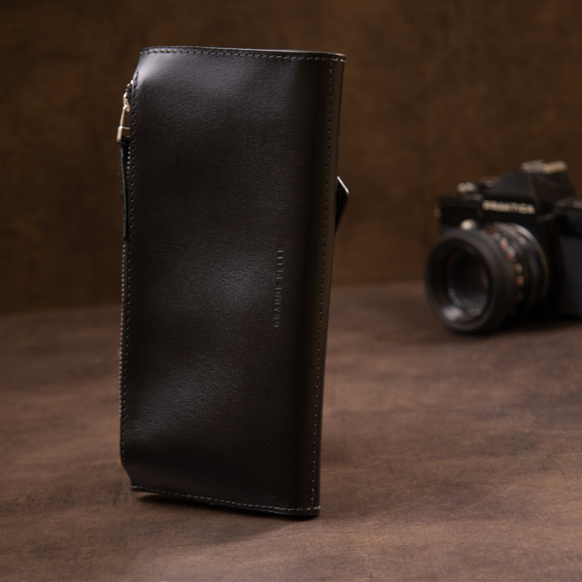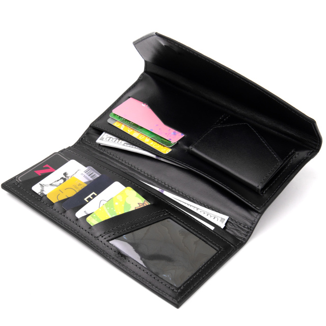 Цвет: черный; Материал: натуральная кожа высокого качества; Размер (ШхВхГ, см):21х10х2; Страна производитель: Украина. Особенности: - три основных открытых отделений для купюр; - 11 слотов для кредиток (1 из них под пленкой); - кармашек для монеток на магните; - кармашек на молнии на задней стенке; - закрывается на магнитную кнопку. Многофункциональный клатч из натуральной кожи высочайшего качества. Изделие имеет очень практичный функционал. В комплекте идет войлочный чехол. Таким образом портмоне идеально подойдет на подарок для ваших близких. В клатч с легкостью поместятся в развернутом виде купюры разного номинала. Аксессуар подойдет под любой образ и подчеркнет ваше чувство стиля. Красивый клатч от украинского бренда будет по душе любому клиенту.