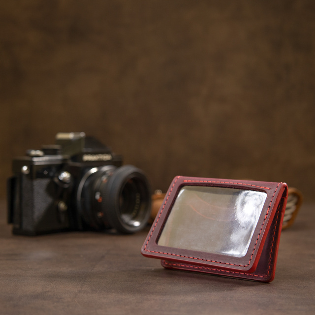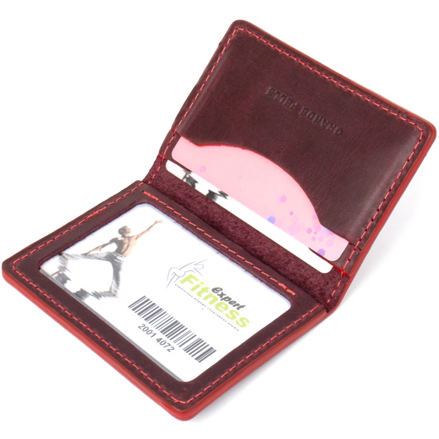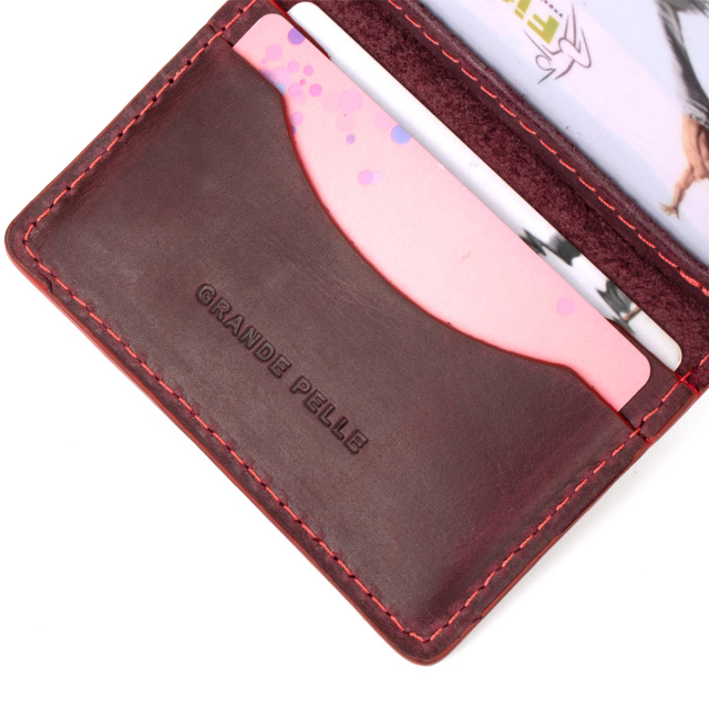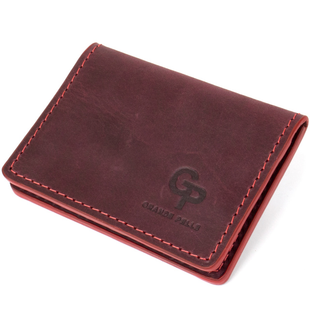 Небольшая визитница из высококлассной натуральной кожи. Имеет красивый женственный бордовый цвет и аккуратные ровные швы более яркого оттенка. Такая визитница поместится не только в сумочку, но даже и в карман, она практически незаметная, но при этом очень практичная. Упакована в чехол.