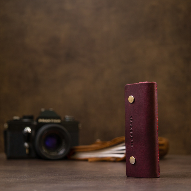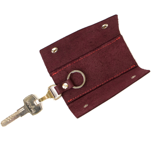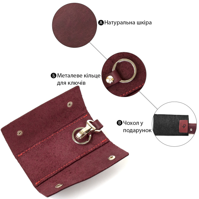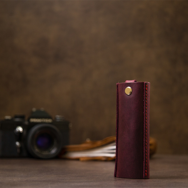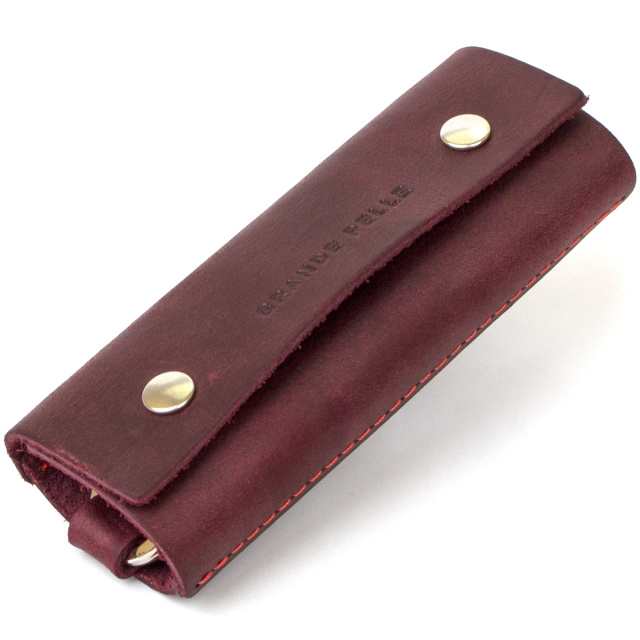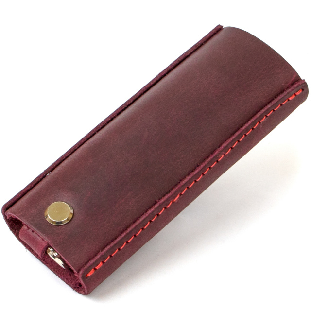 Практичная и надежная ключница для ключей из высококачественной натуральной кожи. Закрывается изделие на две надежные металлические кнопки. Цвет – насыщенный бордовый, швы имеет оттенок немного поярче, что смотрится очень эффектно. Упакован данный аксессуар в фирменный чехол.