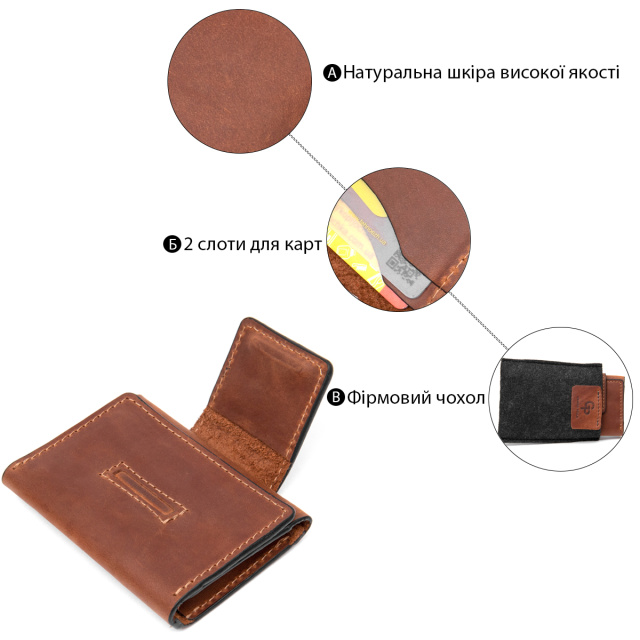 Интересная визитница для карт в винтажном стиле. Выполнена из натуральной кожи, которая мягкая и приятная на ощупь. Закрывается на хлястик со скрытым магнитом, во время эксплуатации это очень удобно и практично. Упаковано изделие в красивый фирменный чехол черного цвета.