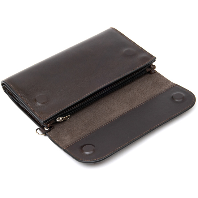 Добротный кожаный мужской клатч высокого качества, которое ощущается буквально в каждом соприкасании с этим замечательным изделием. Внутри расположено богатое и функциональное наполнение в виде вместительных отделений для купюр, мелочи, кредитных и визитных карт, а также прочих ценностей. Такой подарок можно преподнести не только близкому человеку, но и шефу на работе. Упаковка – фирменная сумка-чехол.