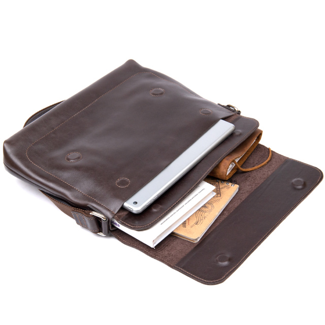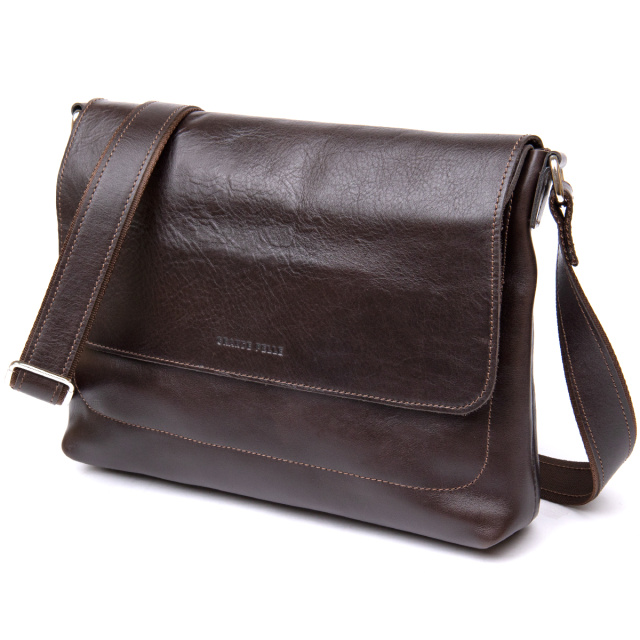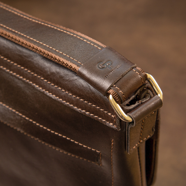 Прямоугольная мужская сумка для мужчин любого возраста. Изготовлена из износостойкой натуральной кожи. Цвет изделия – коричневый с шоколадным оттенком. Имеет красивую и гладкую фактуру. Внутри поместятся документы, планшет, бумаги формата А4 и прочее. Ремень сделан в комбинации кожи и текстиля, что, несомненно, продлит срок его эксплуатации.