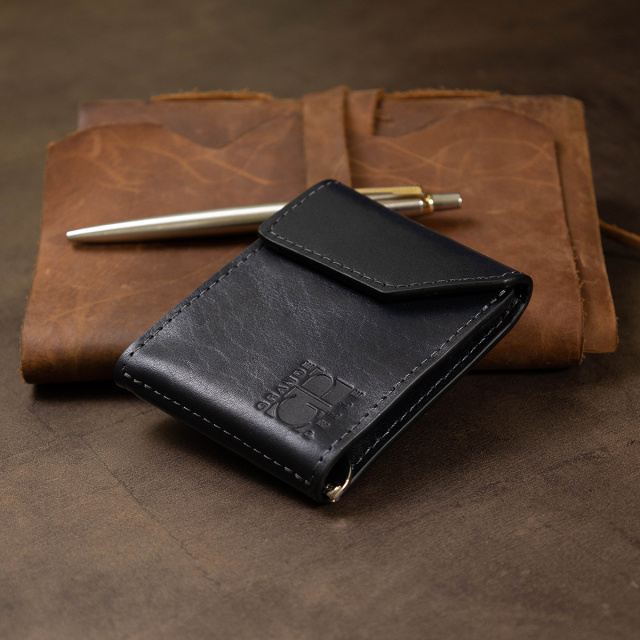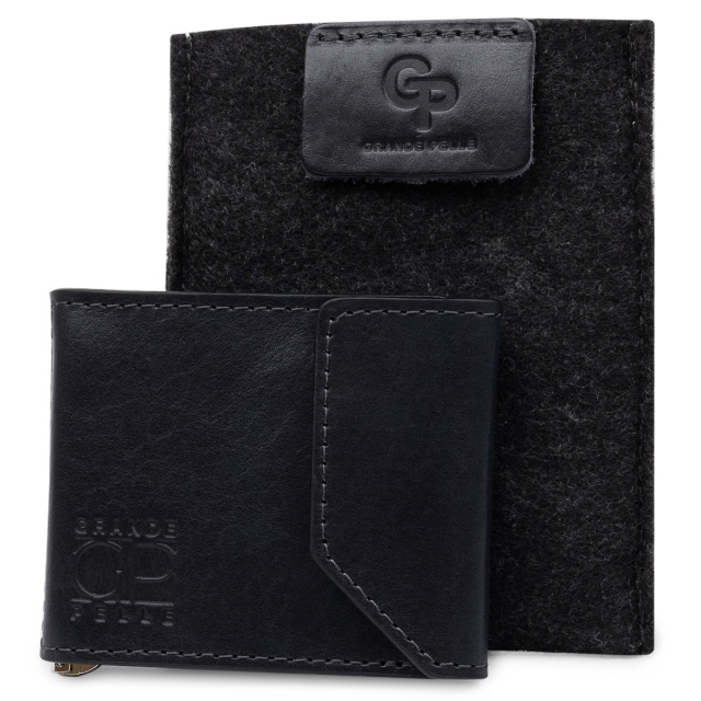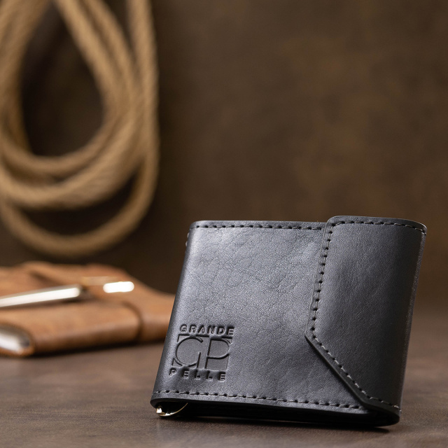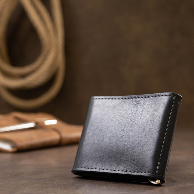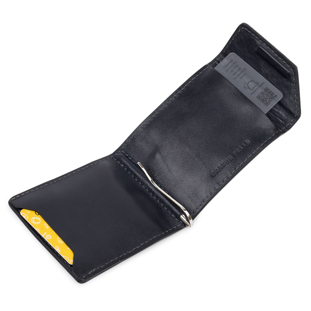 Удобный и практичный компактный зажим для денег из высококлассной кожи, которая имеет отличные эксплуатационные характеристики. Имеет темно-синий глубокий цвет и гладкую фактуру. Внутри кроме металлического зажима, есть еще два кармашка для карточек. Закрывается изделие на небольшой клапан со скрытым магнитом.