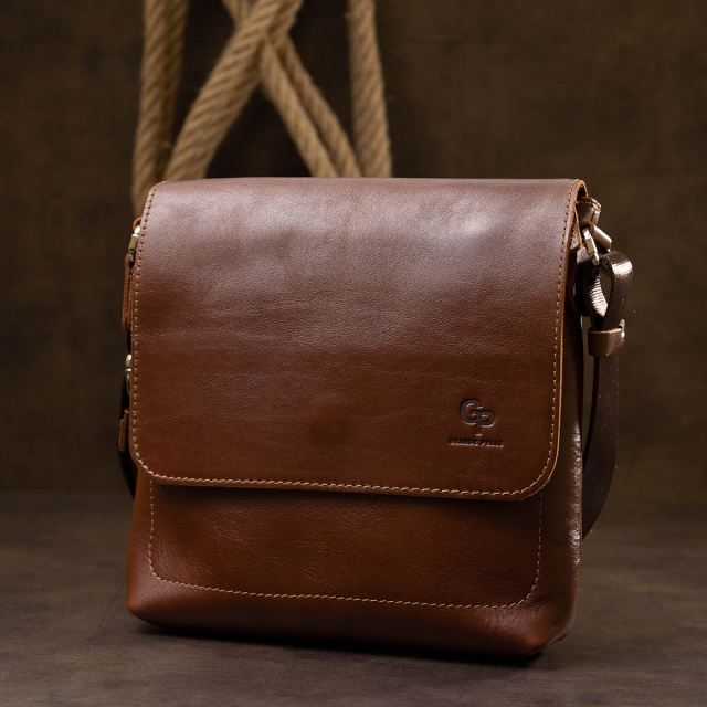 Кожаная мужская сумка через плечо GRANDE PELLE 11567 Коричневый