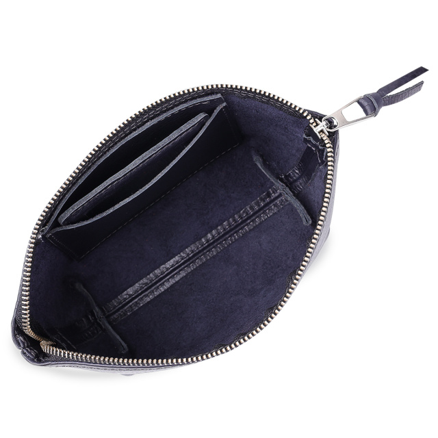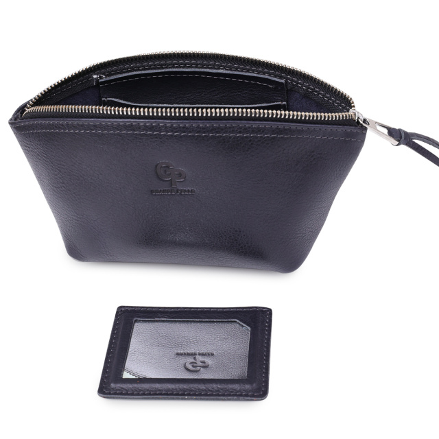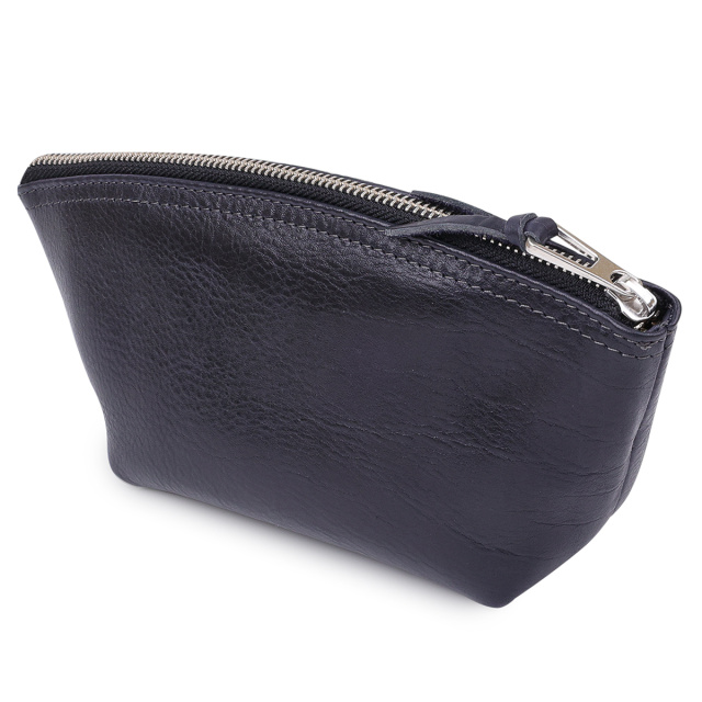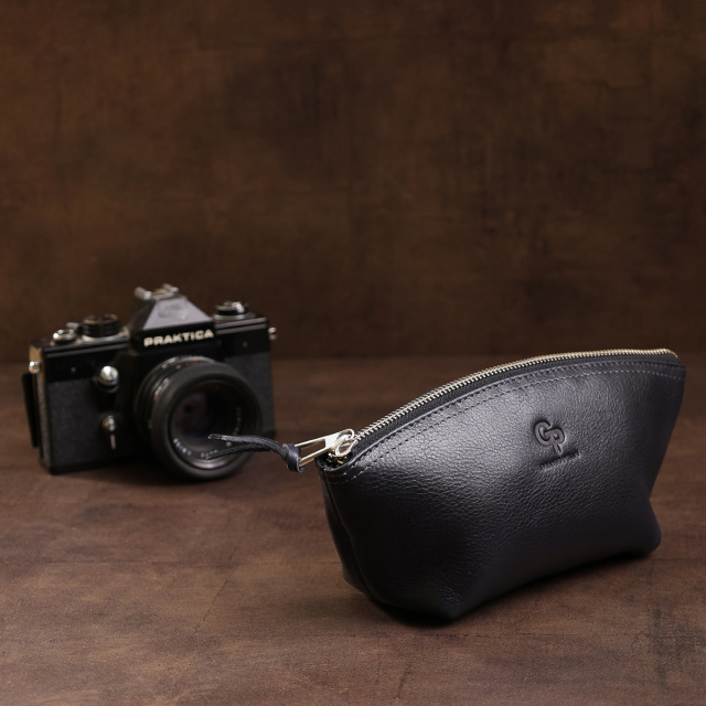 Красивая и стильная женская косметичка из натуральной высокопрочной кожи с отличными характеристиками. Имеет универсальный черный цвет и гладкую фактуру с легким блеском. Такая косметичка пригодится в дороге для хранения ценных необъёмных вещей. Упаковано изделие в фирменный чехол.