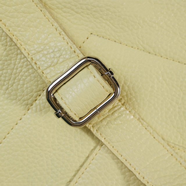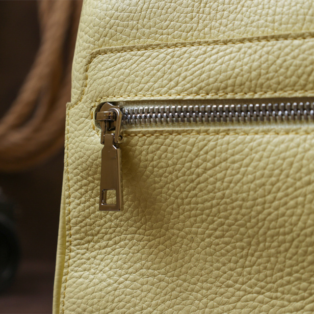 Удобный и практичный женский рюкзак в оригинальном лимонном цвете, что смотрится очень свежо и красиво. Материал изготовления – натуральная высококлассная кожа с отменными показателями износоустойчивости. Внутреннее наполнение представлено в виде вместительного основного отделения. Также на внешней стороне есть небольшой карман на молнии.
